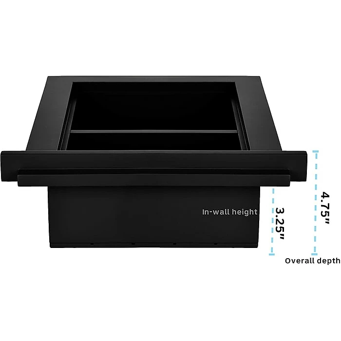 - Has a 3.25 inch in-wall depth to set in the wall and an overall 4.75 inch product depth