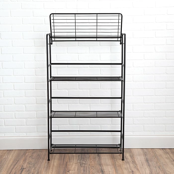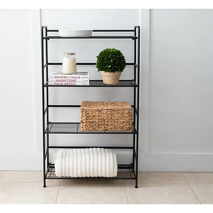 Organize items on this lightweight shelving unit. The one-piece construction sets up in minutes, providing four wide shelves to stow supplies, and the adjustable feet provide a level base. This Advantus FlipShelf folding shelf unit folds flat, so you can easily move it from room to room.