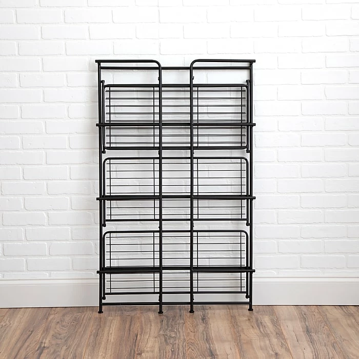 - Black in color, lightweight and durable, made of heavy-duty, powder-coated metal