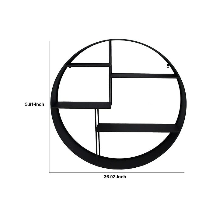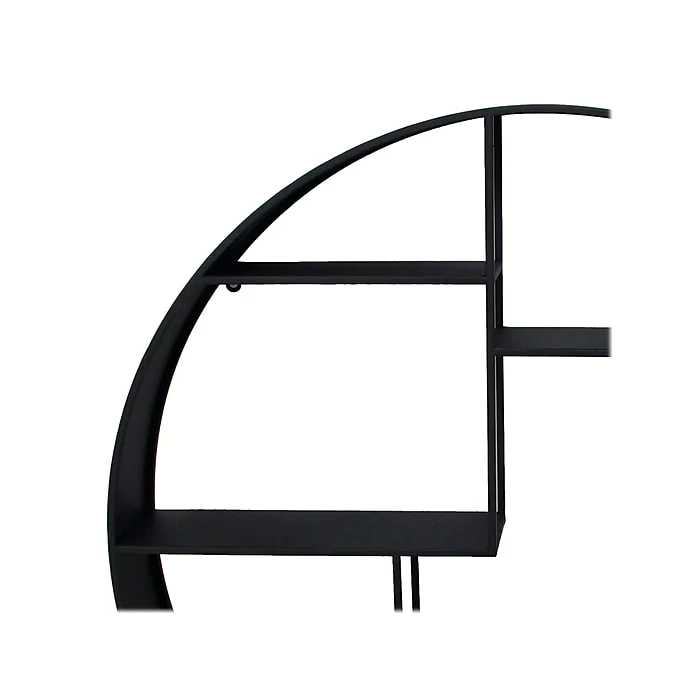 Collocate your decor items and books on this coveted industrial-style wall shelf by Benzara, featuring a round shape and plenty of storage space. Made of metal for prolonged durability, this piece is accented in black hues. Provided with mounting hardware for easy installation, this four-shelf storage will be a great addition to your home and will also enhance the overall aesthetics of your place.