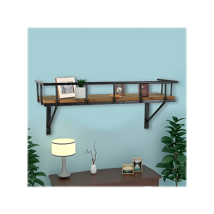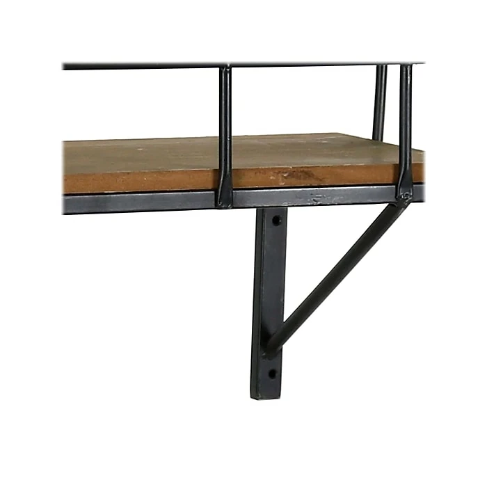 This transitional-style sophisticated and elegant wall shelf by Benzara has metal bracketing and rails with a wooden platform. Put this wall shelf on the wall, and let it merge in with the existing decor smoothly.