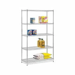 Organize supplies and a variety of important items with this wire shelving unit. The welded steel construction provides long-lasting use, while the chrome finish resists damage and is easily wiped clean. This Coastwide Professional four-shelf wire shelving unit features adjustable shelves in 1-inch increments, letting you easily customize your setup to accommodate different items, and a weight capacity of 700 evenly distributed pounds per shelf meets heavy storage needs.