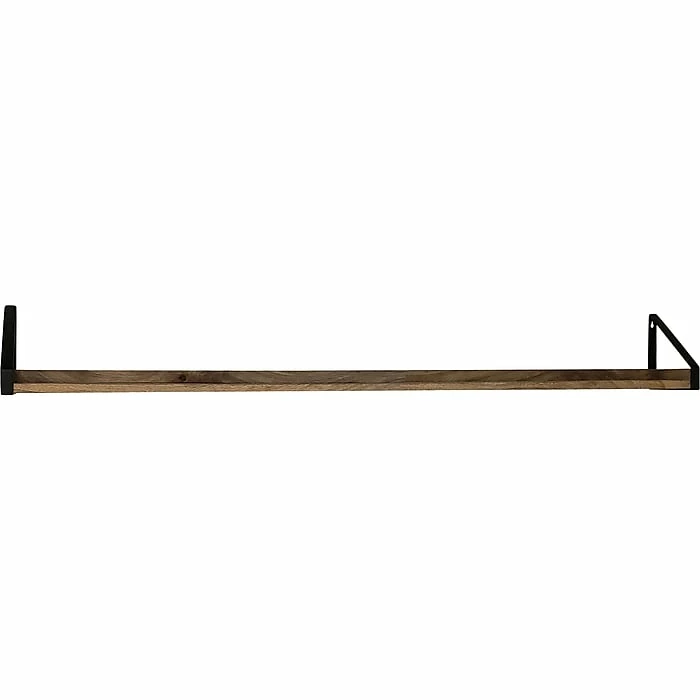 This Eden Grove Shelving real-wood ledge with metal brackets has a smooth surface with rounded edges and an even tapered style. The sturdy metal brackets enhance the ledge and are simple to install. The finish of the real wood varies in color due to the nature of the natural material. The look of reclaimed wood is part of the trendy accent this ledge will make to your home or office.