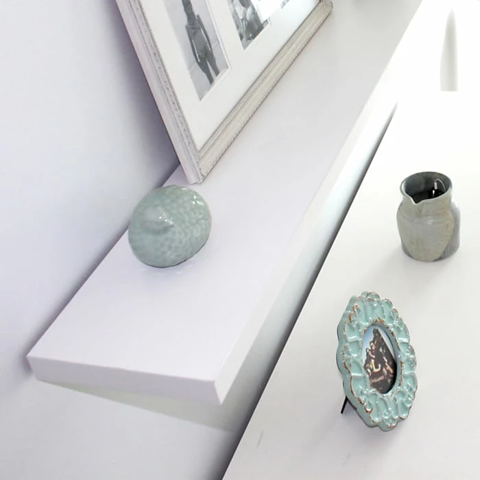 Display your favorite family photos or canvas art in style with the Eden Grove Square Edge shelf. It features a design that would work well with a variety of decors.