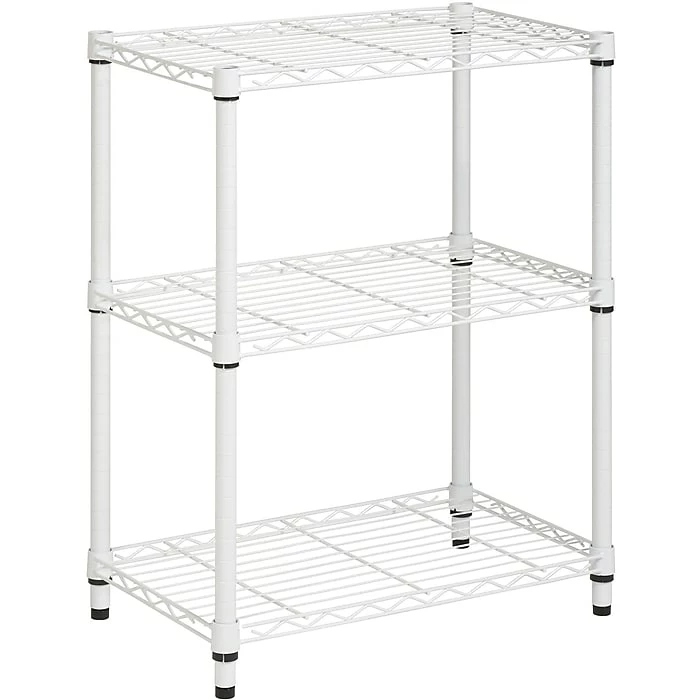 Honey-Can-Do® 3-Tier shelving unit in white color features stackable shelves that provide flexible configuring storage capacity up to 250 lbs. Shelving unit offers easy access to the items with an open design and adds a modern touch to your home.