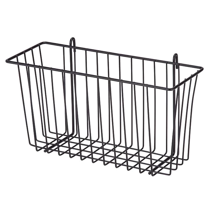 Honey-Can-Do SHF-04052 Shelf Accessory Basket, Black. Instantly add extra storage to your existing shelving unit with this convenient accessory basket. Sturdy steel construction ensures this basket will hold up to 50 pounds without fail. Measures 13.39 in L x 5 in W x 7.6 in H.