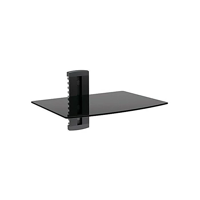 The floating wall mounted shelf allows you to get rid of your floor standing TV furniture and complement the look of your wall mounted flat screen television. The shelf design allows you to place DVD players, cable boxes, gaming consoles, and other AV components on the wall. The shelving system is very durable and can carry up to 17.6 lbs of total weight. Made from sturdy, lightweight aluminum and tempered glass.
