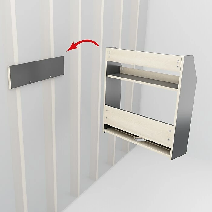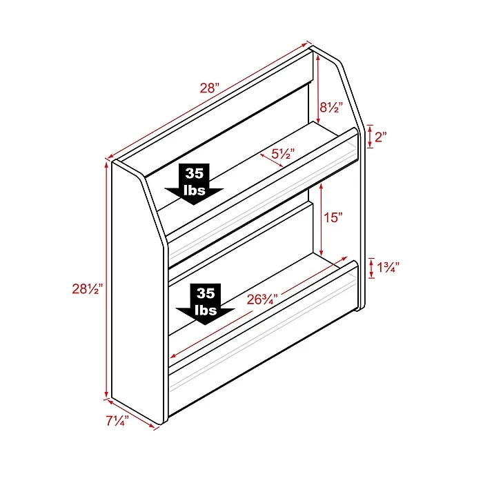 - Shelf Dimensions: 26.75″W x 15″H x 5.5″D (Bottom); 26.75″W x 8.5″H x 5.5″D (Open Top)