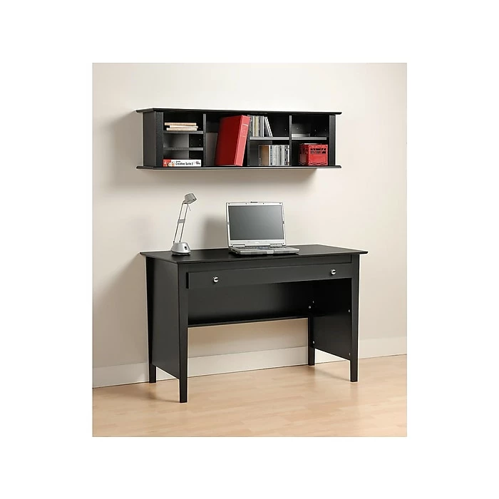 Organize binders or reference materials with this four-compartment desk hutch. The dividers are adjustable for providing flexible storage, and this 48-inch wide Prepac desk hutch has a two-piece hanging rail system that’s easy to install.