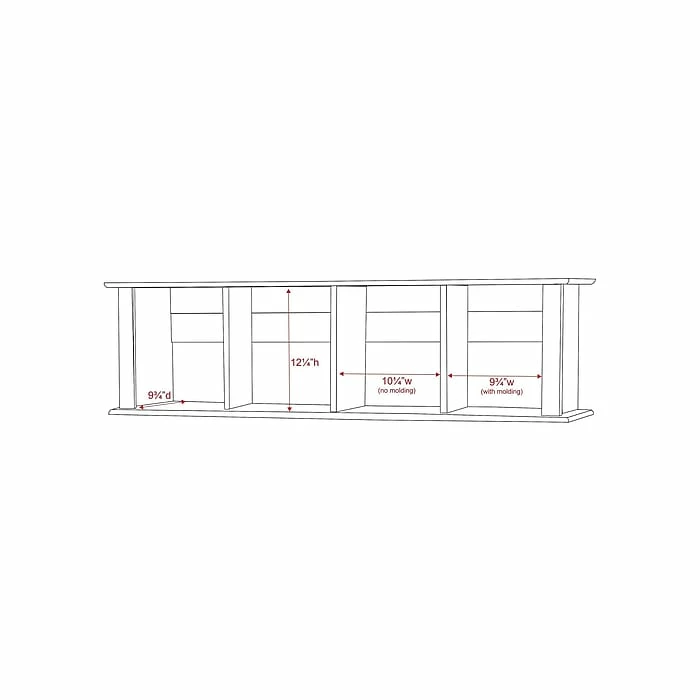 - Two full-width (48″W) shelves and two small (9.75″W) shelves in two of four cubbies