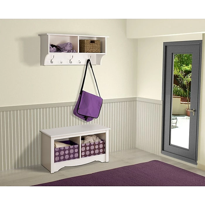 - Includes Prepac 36″ entryway cubby shelf, hanging rail system, owner’s manual