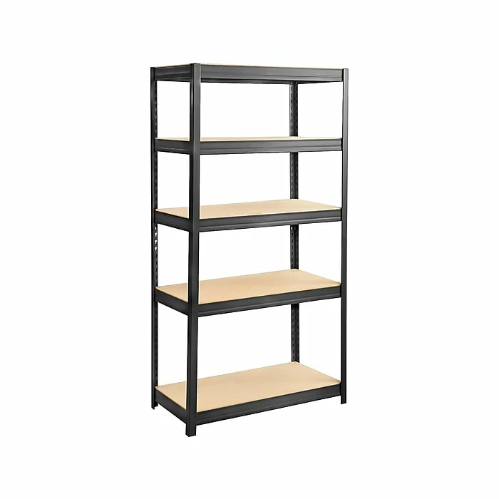Provide a streamlined storage solution for your business, basement. or garage with this sturdy shelving unit. The five shelves adjust in 1-inch increments to accommodate items in various sizes, and the steel construction provides support for heavy supplies and equipment. This Safco steel and particleboard shelving has smooth, minimal lines to bring a clean, modern look to any storage space.