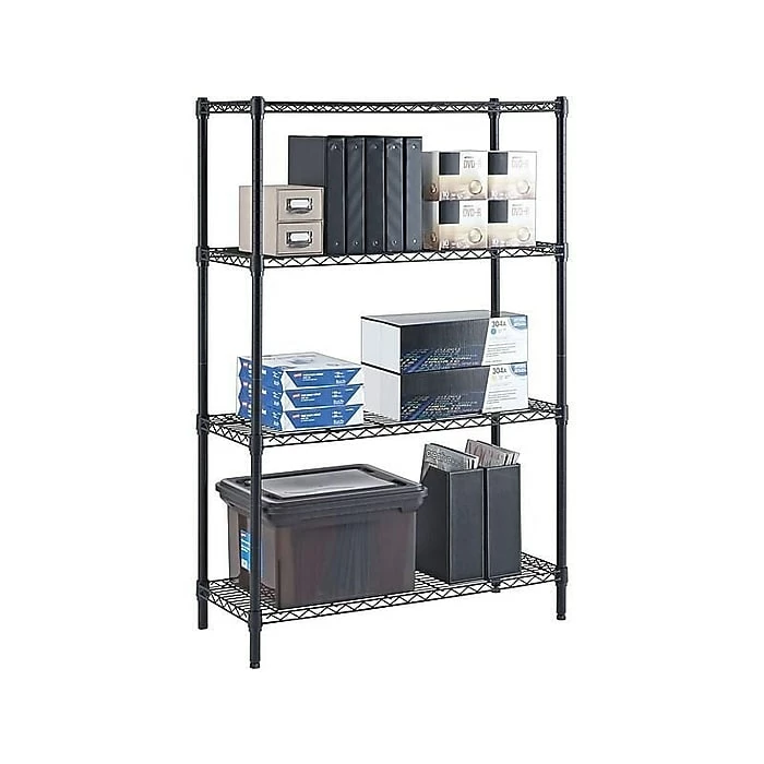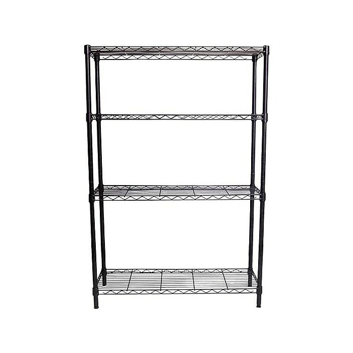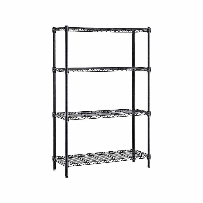 - Made of steel with durable black epoxy finish that resists rust, chips, and corrosion, while wire construction provides adequate air flow and high visibility of stored goods from every side